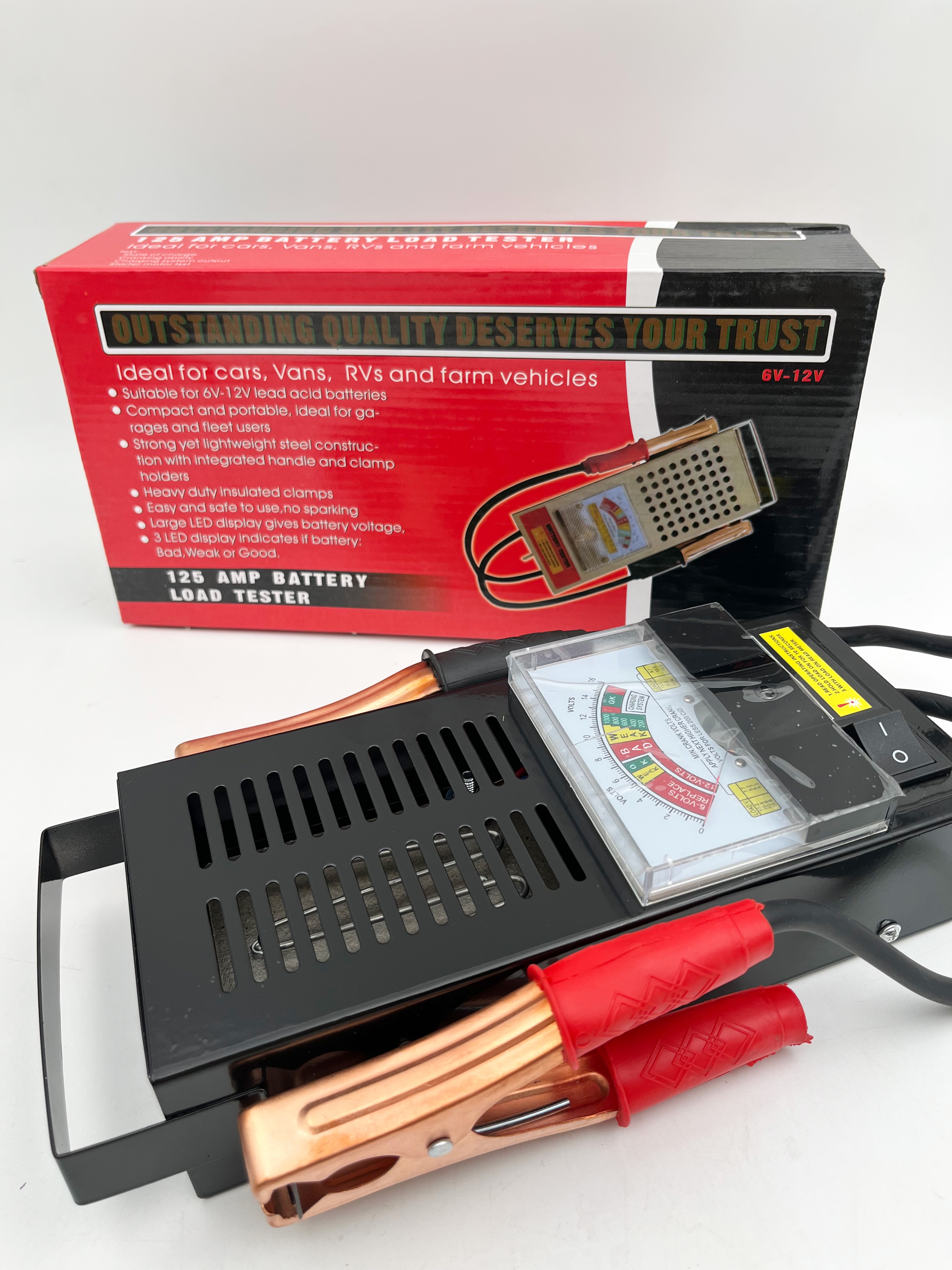 تستر باتری و دینام انالوگ ۱۲۰ امپر تست دینام و باتری را میتوانید با این ابزار به راحتی بگیرید جنس سیم و گیره تمام مسی است این محصول آنالوگ است و۱۲۰ آمپر میباشد