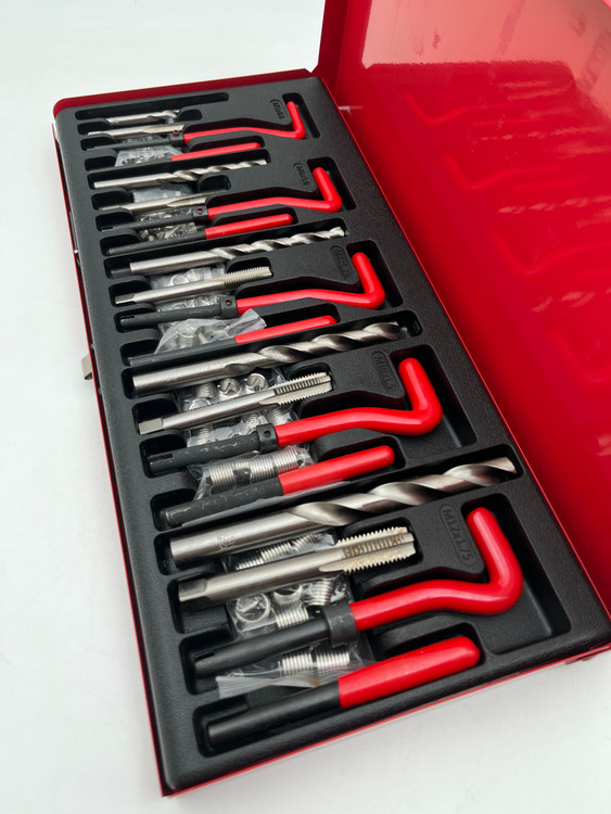 مته-قلاویز- آچار-سنبه و ده عدد فنر هلیکویل برای هرسایز