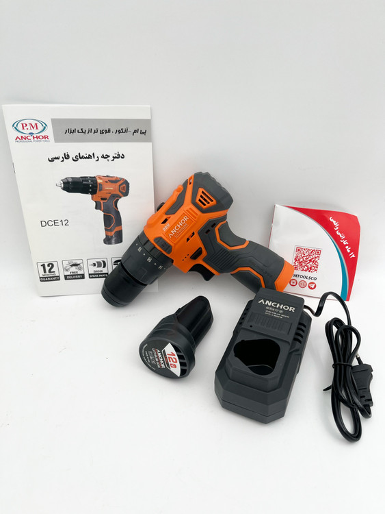 نام محصول: دریل پیچگوشتی چکشی شارژی براشلس آنکور ۱۲ولت تک باتریDCE12