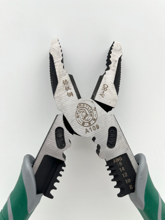 انبردست اهن بر چند کاره که دارای قدرت برش اهن الات همچنین پرس سر کابل- سیم لخت کن در سایزهای 8-10-12-14-16 میباشد-