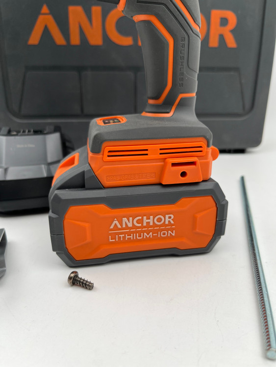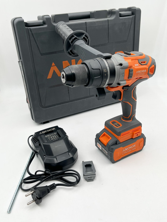 دریل پیچ گوشتی چکشی شارژی آنکور تک باتری (براشلس) دارای یک عدد باتری 20 ولت لیتیوم 4 آمپر مجهز به سه نظام اتوماتیک فلزی 13 میلیمتر سرعت در حالت بیباری 2000-0 و 400-0 دور در دقیقه مجهز به گیربکس دو سرعته دارای چپگرد و راستگرد و کلید گازی دارای حالت ترکمتر برای پیچبند و حالت چکشی برای سوراخ کاری دیوار همچنین حالت سوراخکاری معمولی دارای نمایشگر شارژر و چراغ LED جهت کار در محیط تاریک به همراه جعبه BMC،شارژر ،دسته کمکی،قلاب کمری و کمربند کمکی |
