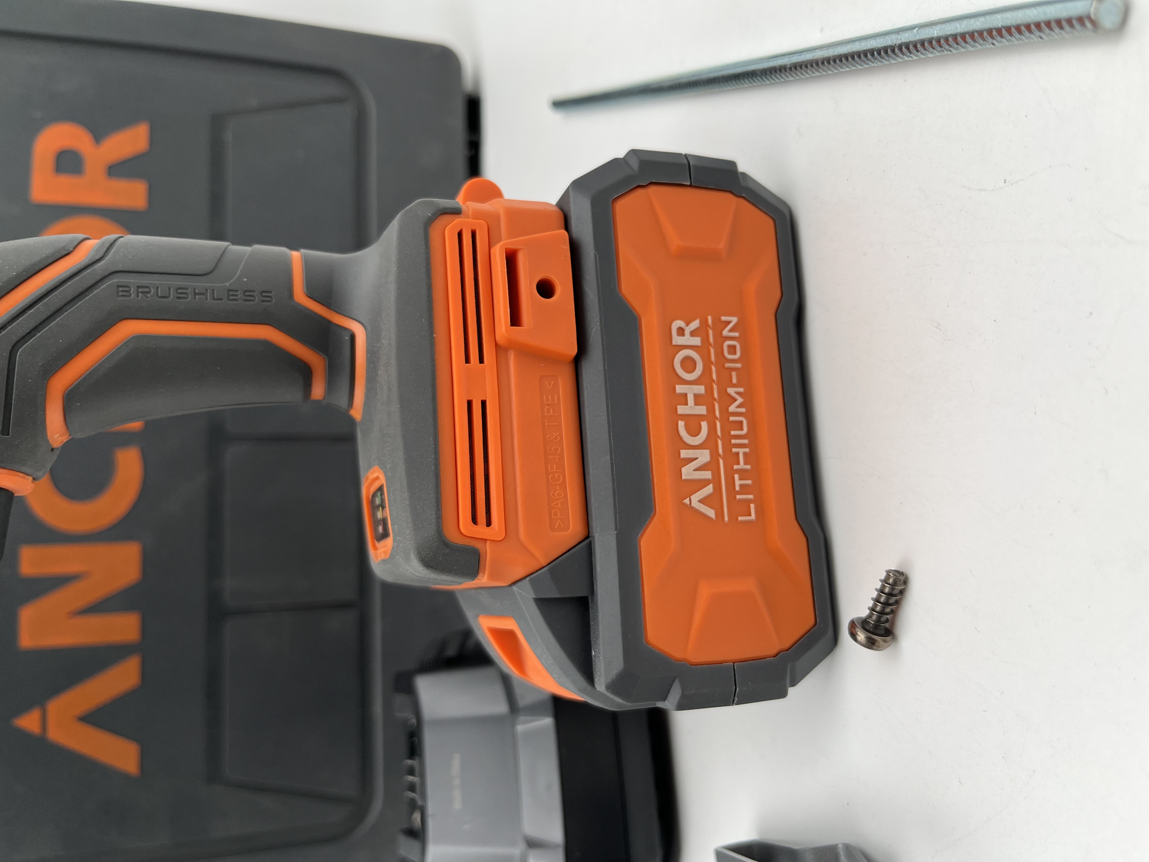 دریل پیچ گوشتی چکشی شارژی آنکور تک باتری (براشلس) دارای یک عدد باتری 20 ولت لیتیوم 4 آمپر مجهز به سه نظام اتوماتیک فلزی 13 میلیمتر سرعت در حالت بیباری 2000-0 و 400-0 دور در دقیقه مجهز به گیربکس دو سرعته دارای چپگرد و راستگرد و کلید گازی دارای حالت ترکمتر برای پیچبند و حالت چکشی برای سوراخ کاری دیوار همچنین حالت سوراخکاری معمولی دارای نمایشگر شارژر و چراغ LED جهت کار در محیط تاریک به همراه جعبه BMC،شارژر ،دسته کمکی،قلاب کمری و کمربند کمکی |